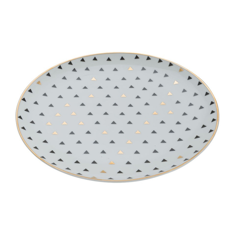 Met dit moderne dinerbord met zwart en goud design serveer je jouw gerechten in stijl! Het design is erg mooi, waardoor de borden ook als decoratie gebruikt kunnen worden. Op het bord staan namelijk zwarte en gouden driehoekjes. Het dinerbord is afgewerkt met een subtiele gouden rand. De borden maken jouw gedekte tafel heel feestelijk. Leuk tijdens de feestdagen, maar ook daarna kun je ze natuurlijk nog gebruiken.