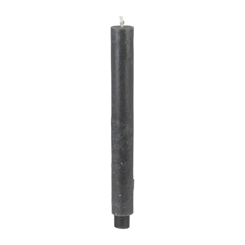 Prachtige antraciet gekleurde dinerkaars voor een heerlijke avond of gezellig diner met aangestoken kaarsen. De kaars is dikker dan normaal, maar dankzij de dunnere onderkant kan deze gewoon in een kandelaar gezet worden. Met deze dinerkaars heb je altijd de mogelijkheid om extra sfeer te creëren in huis. De kaars heeft een hoogte van 27 cm en is 3 cm dik. Het aantal branduren is ongeveer 26 uur.