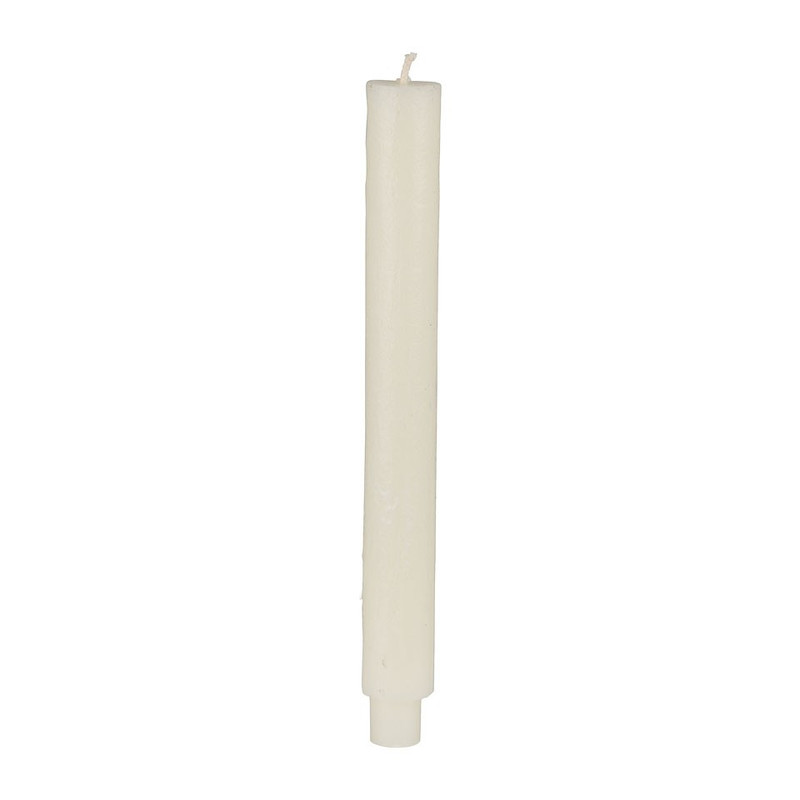 Prachtige ivoor gekleurde dinerkaars voor een heerlijke avond of gezellig diner met aangestoken kaarsen. De kaars is dikker dan normaal, maar dankzij de dunnere onderkant kan deze gewoon in een kandelaar gezet worden. Met deze dinerkaars heb je altijd de mogelijkheid om extra sfeer te creëren in huis. De kaars heeft een hoogte van 27 cm en is 3 cm dik. Het aantal branduren is ongeveer 26 uur.