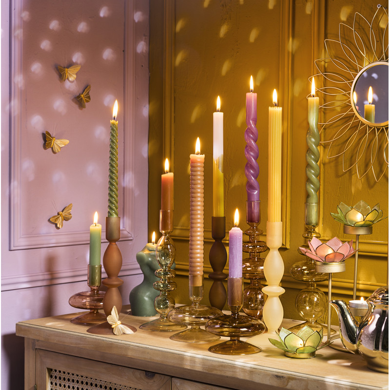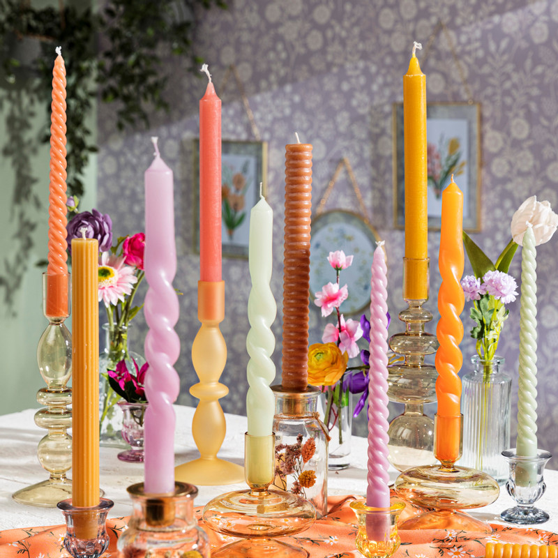 Hoe leuk is deze dinerkaars met swirl? Het is bijna zonde om deze kaars te branden! Combineer de swirl kaars met twisted dinerkaarsen in verschillende maten en kleuren. Een leuke kandelaar erbij en je hebt een gezellig hoekje in huis.
