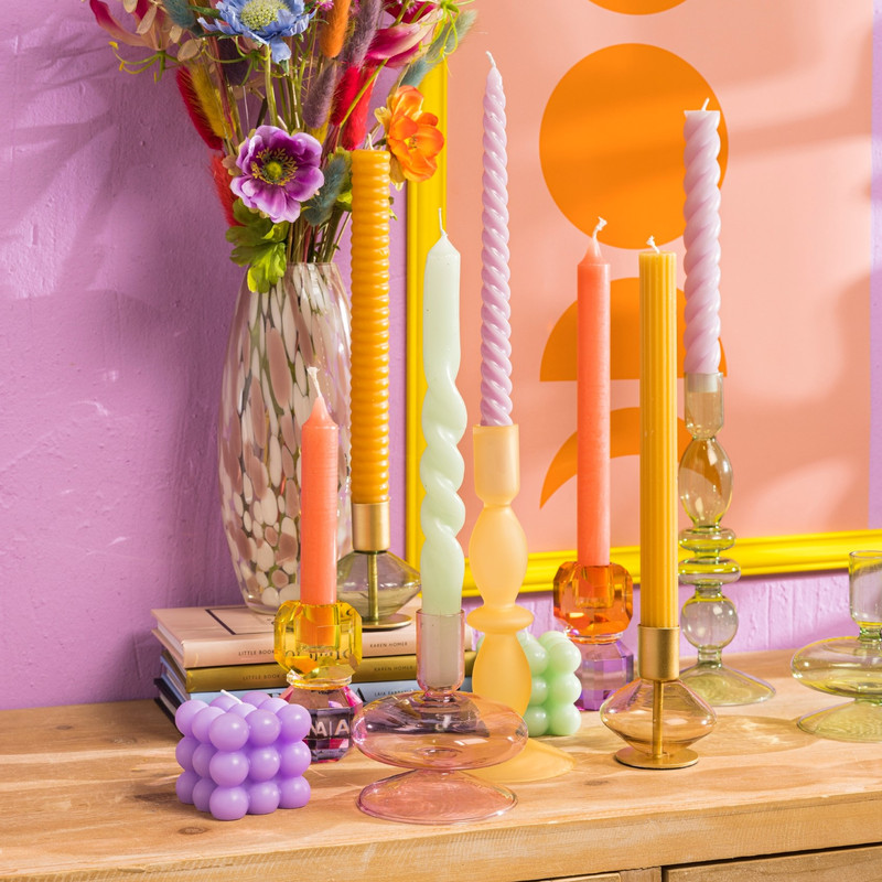 Helemaal on-trend: dinerkaarsen met een twist! Deze dinerkaars heeft een zalmroze kleur en zorgt voor extra gezelligheid en sfeer. Mix & match dinerkaarsen in verschillende kleuren met elkaar voor een speels effect. De dinerkaars twist small heeft een diameter van 2.15 en een hoogte van 25 cm.