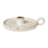 Maak je tafel of dressoir gezellig met deze gevlekte dinerkaarshouder. De kaarshouder zorgt voor een chique en sfeervol interieur. Combineer de kaarshouder met andere mooie kandelaars en theelichthouders. De dinerkaarshouder heeft de afmetingen 18X14.5X4.5cm en is gemaakt van porselein.