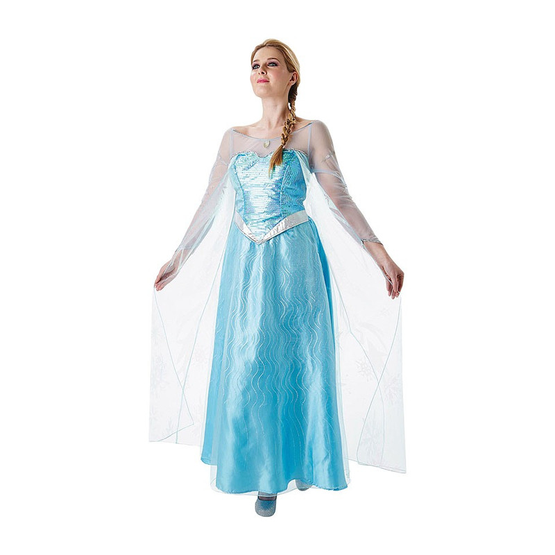 Officiële prinses Elsa Frozen jurk voor volwassenen. Iedereen kent natuurlijk de populaire Disney film Frozen. Met deze prachtige jurk van sneeuwkoningin Elsa maak je zeker indruk op elk (verkleed)feest; of het nu Halloween of Carnaval is. Geef je een Frozen feestje voor kinderen? Verkleed je dan passend als sneeuwkoningin Elsa.