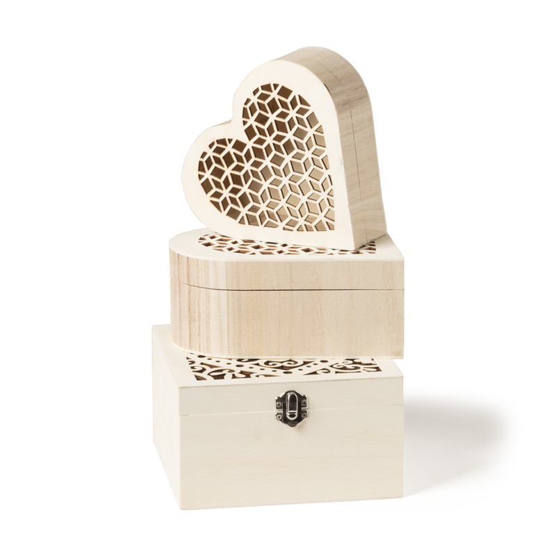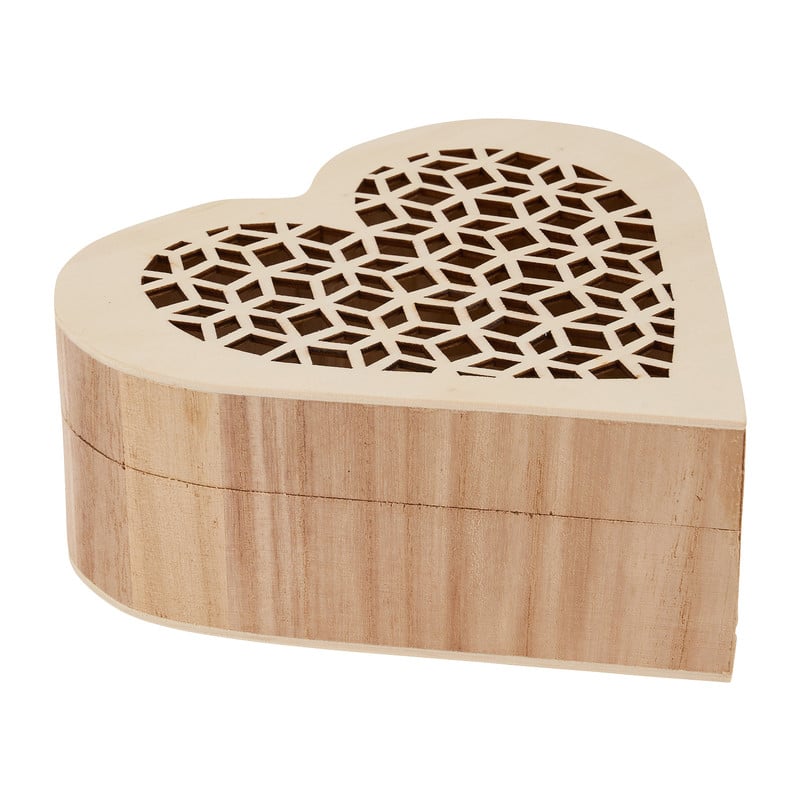 Dit houten doosje is perfect om te versieren met verf, glitters, kraaltjes, papier, vilt, textiel of washi tape bijvoorbeeld. Het doosje heeft de vorm van een hart en een deksel met een mooi motief. De afmeting van het doosje is: 15x16,5x6,5 cm.