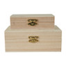 Deze set bestaat uit twee rechthoekige doosjes. Perfect om te versieren met verf, glitters, kraaltjes, papier, vilt, textiel of washi tape bijvoorbeeld. De dozen zijn gemaakt van blanco hout dat makkelijk te bewerken is. De afmetingen zijn 11x6x3.5 cm en 14x9x5.5 cm.