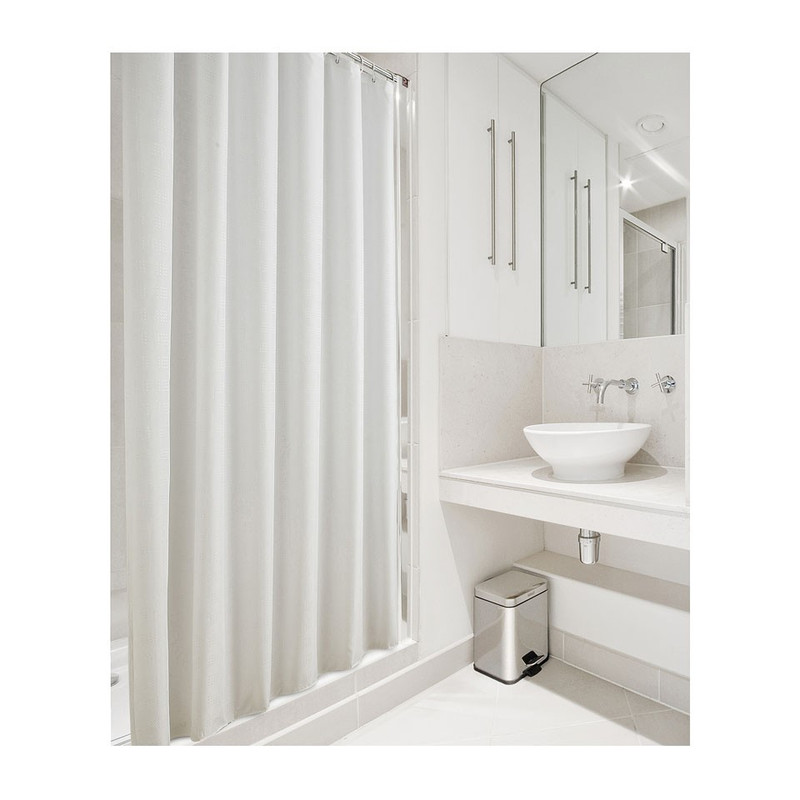 Dit witte douchegordijn van Xenos is eenvoudig en stijlvol tegelijk. Het gordijn is gemaakt van polyester, een waterafstotend materiaal. Geen gespetter meer in de badkamer dus! De afmeting van het douchegordijn is 180 bij 200 centimeter. Een standaard formaat, dat past in de meeste badkamers en doucheruimten. Is het douchegordijn vies geworden? Dan kun je ‘m wassen op 30 °C.