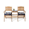 Bijkomend voordeel is ook dat je deze double seat kunt inklappen. Zo kun je deze handig opbergen in de schuur wanneer je de stoelen niet gebruikt. De afmeting van het tafeltje is 47x42 cm en het zitoppervlak van de stoelen is 42x44 cm.