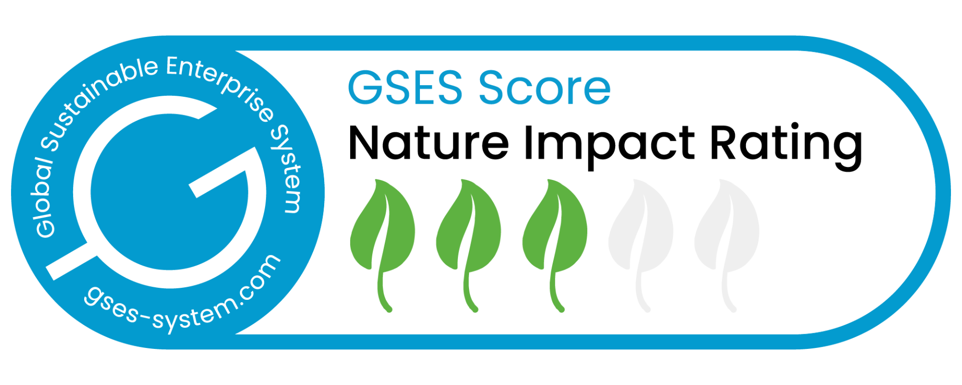 We vinden het belangrijk om transparant te zijn over de impact van onze producten op onze natuur (mens, milieu en maatschappij). Om deze impact in kaart te brengen maken we gebruik van de Nature Impact Rating van het Global Sustainable Enterprise Systeem (GSES).