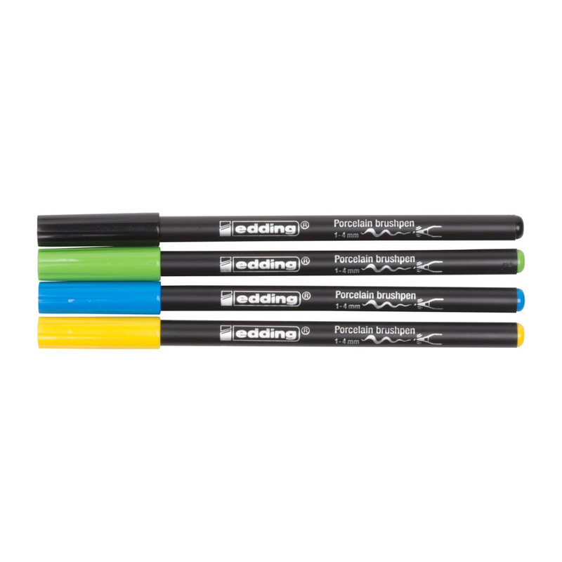 Koffiebekers, vazen of eierdopjes: met de nieuwe Edding 4200 porselein-penseelstift kun je allerlei soorten servies beschilderen en decoreren. Een voorwaarde is wel dat het servies gemaakt is van porselein, geglazuurd keramiek en ovenvast glas. Nadat jouw kunstwerk af is moet deze een korte tijd in de oven waardoor het uithard. Hierdoor heb je blijvend plezier van je gedecoreerde producten. Doordat het is uitgehard zijn jouw creaties ook vaatwasmachinebestendig tot 50 graden. * Variabele lijndikte door penseelpunt ca. 1-4 mm * Pen horizontaal bewaren * Kleur: reukvrije pigmentkleuren op waterbasis * Verkrijgbaar in diverse kleuren