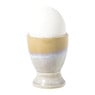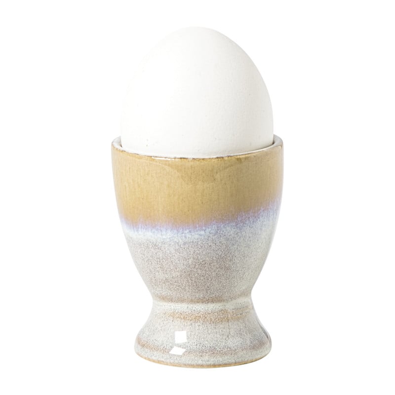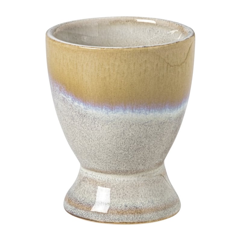 Dit eierdopje is voorzien van reactive glaze, een bijzonder type glazuur dat wordt toegepast bij de productie van deze items. Dit glazuur reageert op de chemische samenstelling van het materiaal en de omgeving tijdens het bakproces, waardoor elk item een unieke afwerking krijgt.