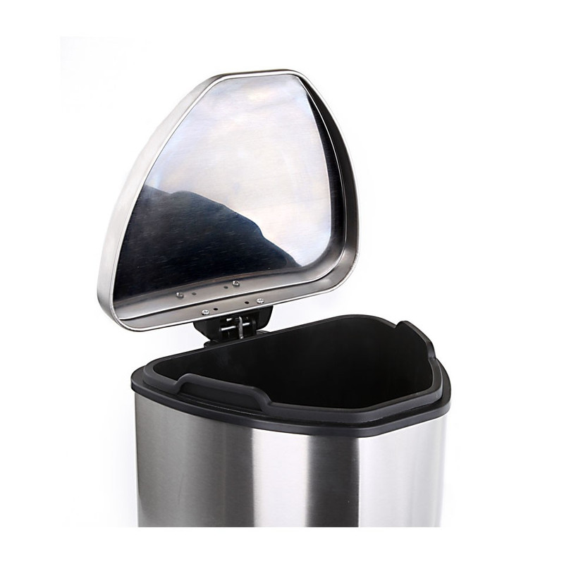 De Grace Step Bin heeft een driehoekige vorm en is gemaakt van Mat RVS. Deze pedaalemmer heeft een inhoud van 5 liter. De pedaalemmer is voorzien van een kunststof binnenemmer en gedempt sluitend deksel.