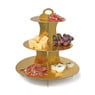 Geef je high tea of feestje een extra glamoureuze uitstraling met deze goudkleurige papieren etagère. Ideaal om je hapjes, cupcakes of desserts op te presenteren. De glanzende gouden afwerking maakt het een chique toevoeging aan elke tafel, terwijl het papieren materiaal ervoor zorgt dat het licht en gemakkelijk te monteren is. Perfect voor feestelijke gelegenheden zoals bruiloften, verjaardagen of kerst. Bovendien gooi je de etagère na gebruik gemakkelijk weg, dus geen gedoe met afwassen na het feestje!