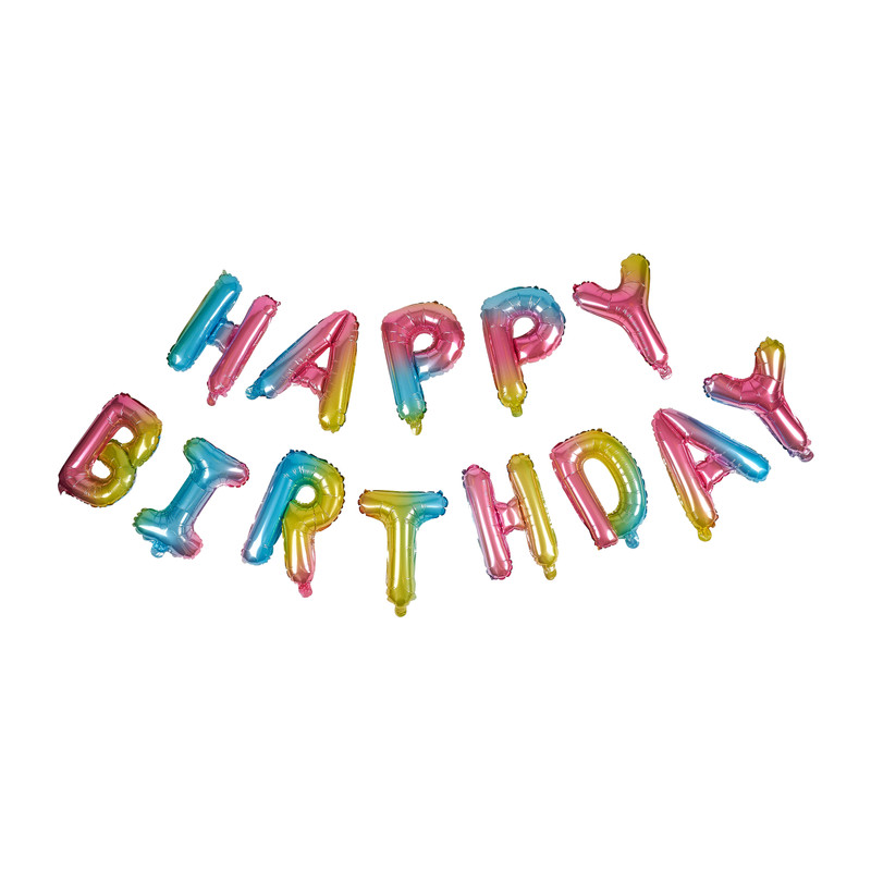 Verras de jarige met deze Happy Birthday folieballonnen slinger. De letters van de folieballonnen hebben een afmeting van 30 cm per stuk als deze niet opgeblazen zijn. Leuk om te combineren met de regenboog metallic opblaascijfers.