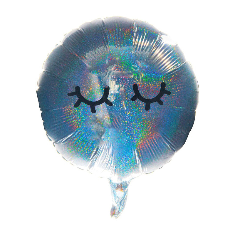 Maak jouw feestje compleet met deze shiny zilverkleurige ballon met een diameter van 35 cm. Op de ballon staan twee 'ogen' in een slaapstand. Deze folieballon is ook ideaal voor een babyshower of op een kinderkamer.