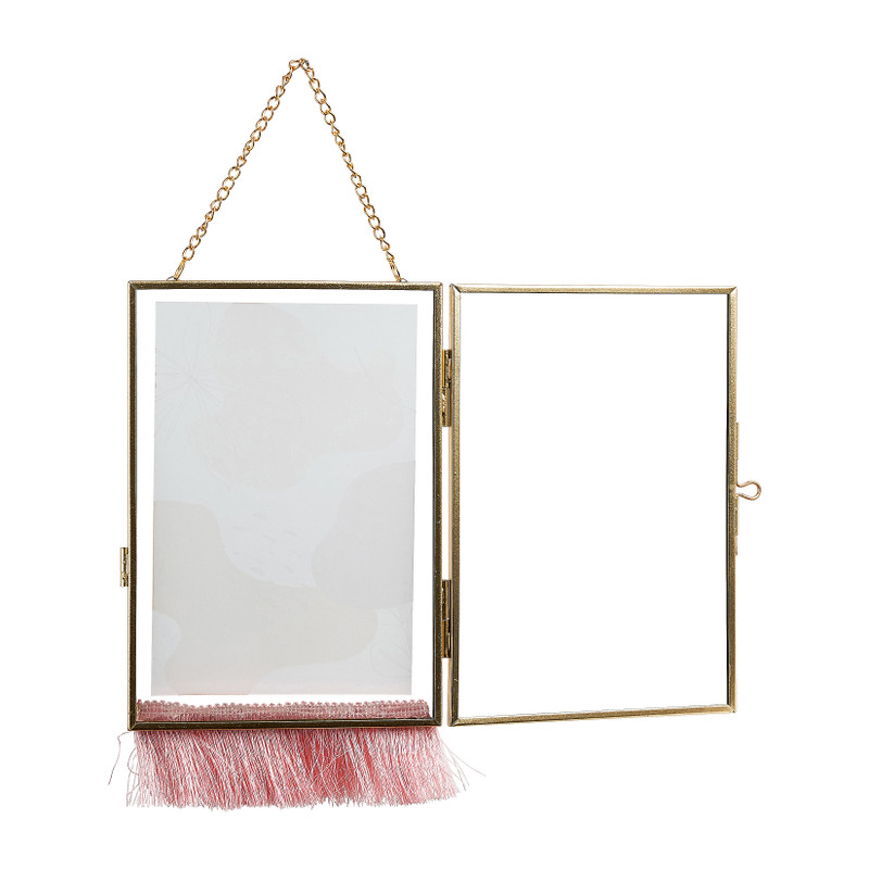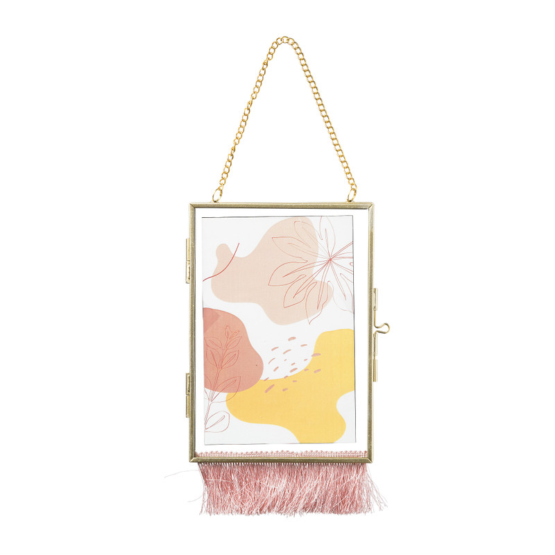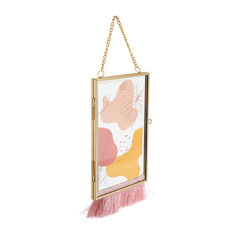 Fotolijst aan ketting met franje - 10x15 cm - goud/roze