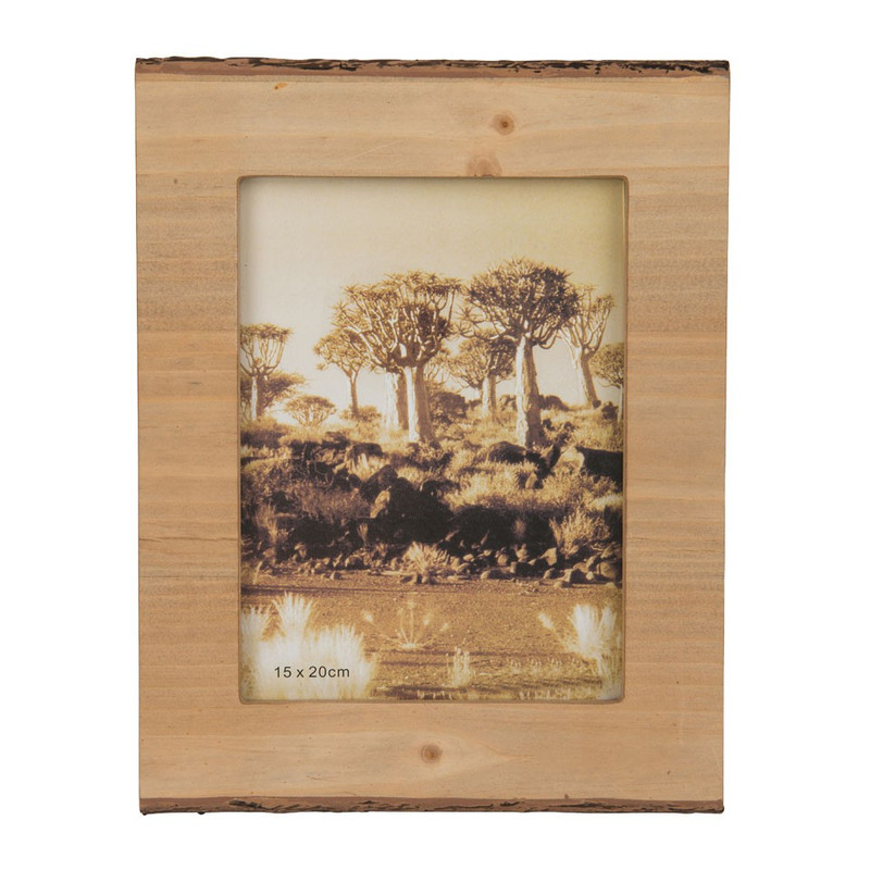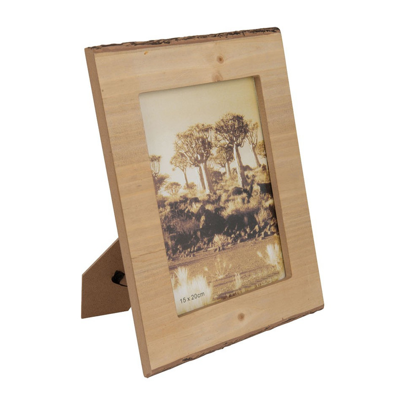 Deze fotolijst heeft dankzij een detail van boomschors aan de onder- en bovenzijde, een leuke natuurlijke uitstraling.