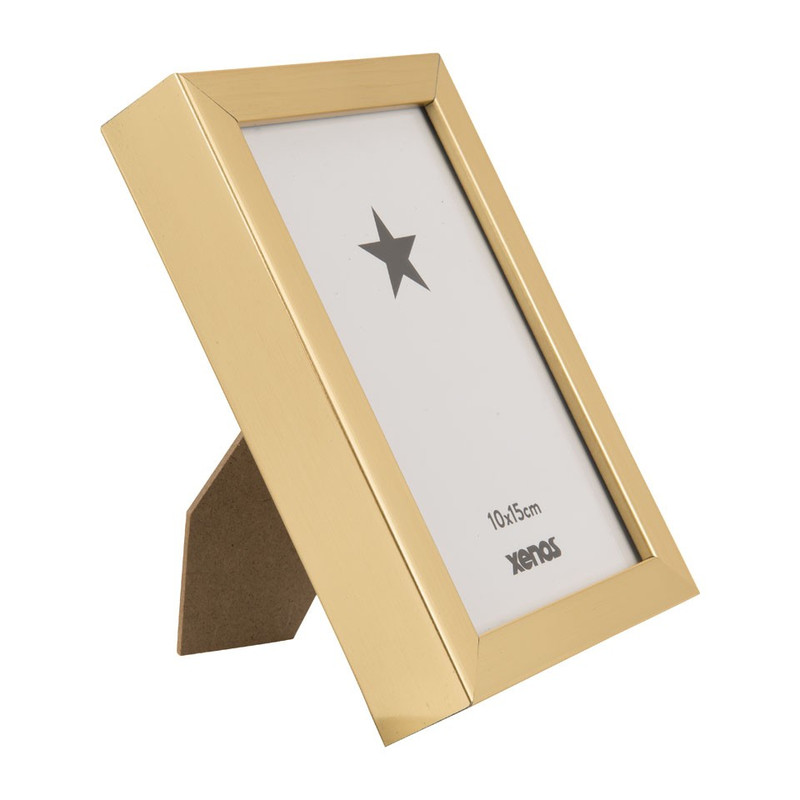 Chique goudkleurige fotolijst voor een foto van 10x15 cm. Bewaar jouw dierbaarste herinnering in dit mooie lijstje. Dit lijstje kun je verticaal ophangen en zowel horizontaal als verticaal neerzetten.