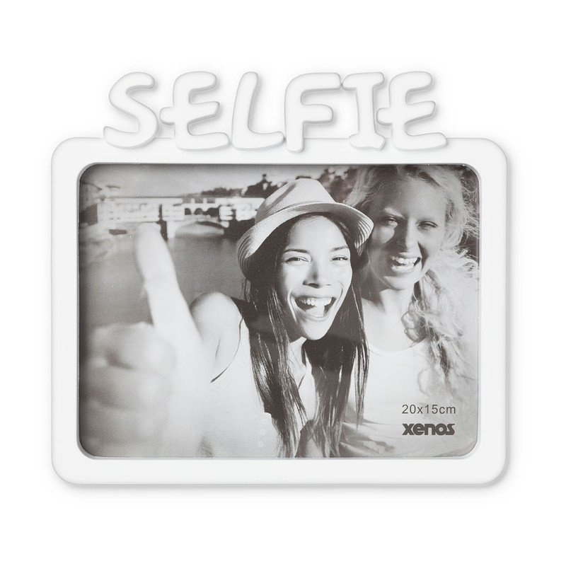 Bewaar jouw allermooiste selfie in deze grappige witte fotolijst. Op de bovenkant van de lijst staat het woord 'selfie'. Er kan een foto in van 15x20 cm. Je kunt deze lijst alleen horizontaal neerzetten.
