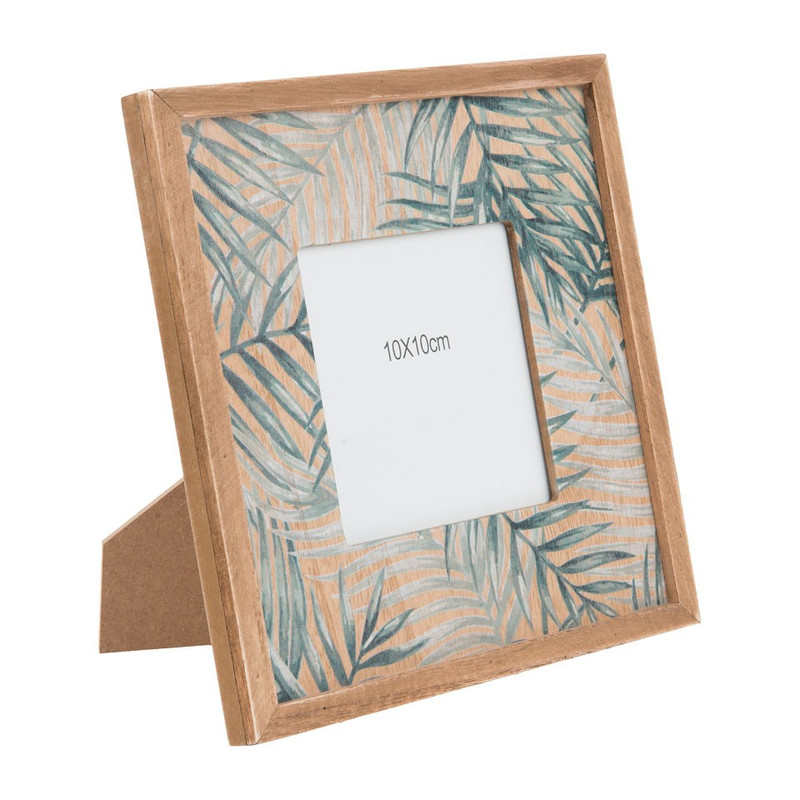 Presenteer jouw favoriete foto's in dit fotolijstje met bladdecoratie. In de fotolijst kan een foto geplaatst worden van 10x10 cm groot. De lijst zelf heeft een afmeting van 19x19x1.2 cm.