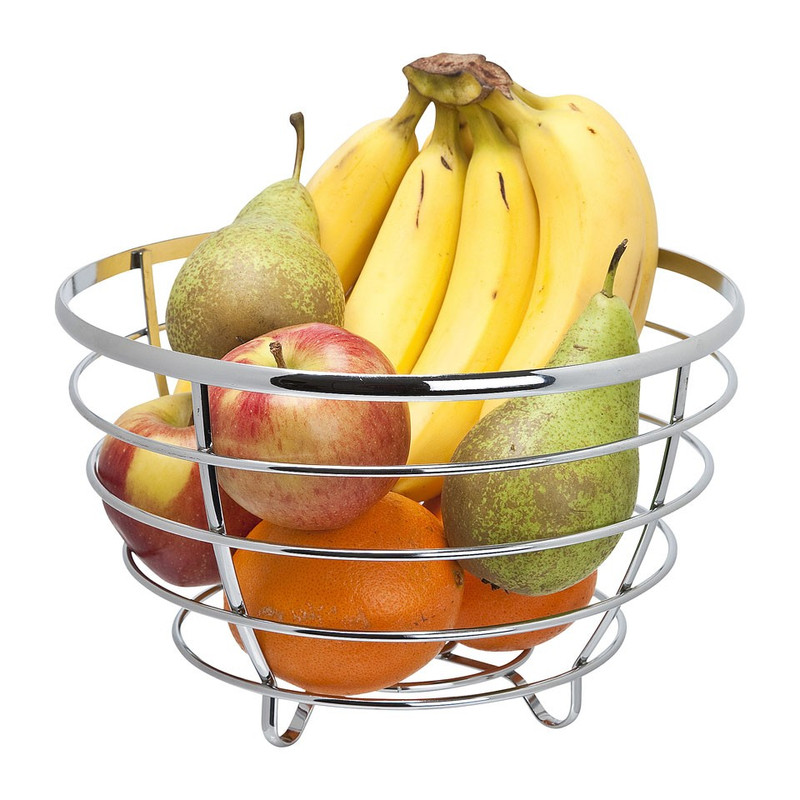 Zet deze fruitschaal vol met fruit op je tafel en hij vrolijkt je huis helemaal op. De fruitmand is elegant en modern door het spiraalvormige model. Niet alleen voor het bewaren van je fruit dus, maar ook een ware eyecatcher in de woonkamer of in de keuken. Door het natuurljke design, de goede kwaliteit RVS en de afwerking is deze schaal met of zonder inhoud mooi om te zien. Je kunt hem dus ook vullen met leuke decoratieve materialen. De schaal heeft een diameter van 25 centimeter en een hoogte van15,8 centimeter.