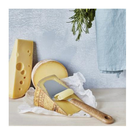 - Lemmet geleidt de plakken kaas en voorkomt breken