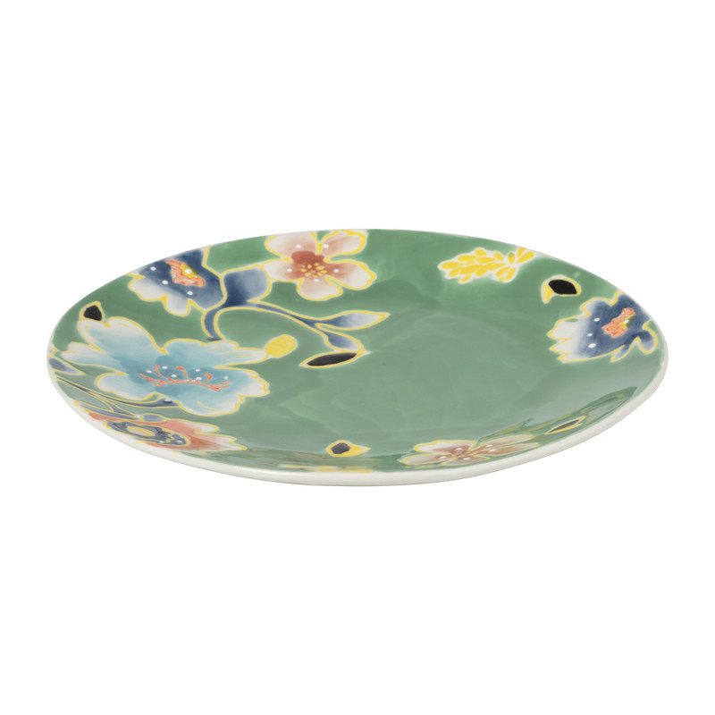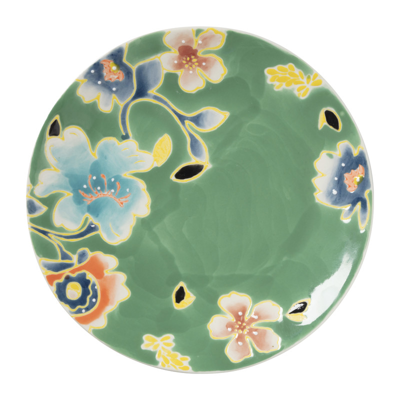 Gebaksbordje bloemen - groen/blauw - ø15 cm