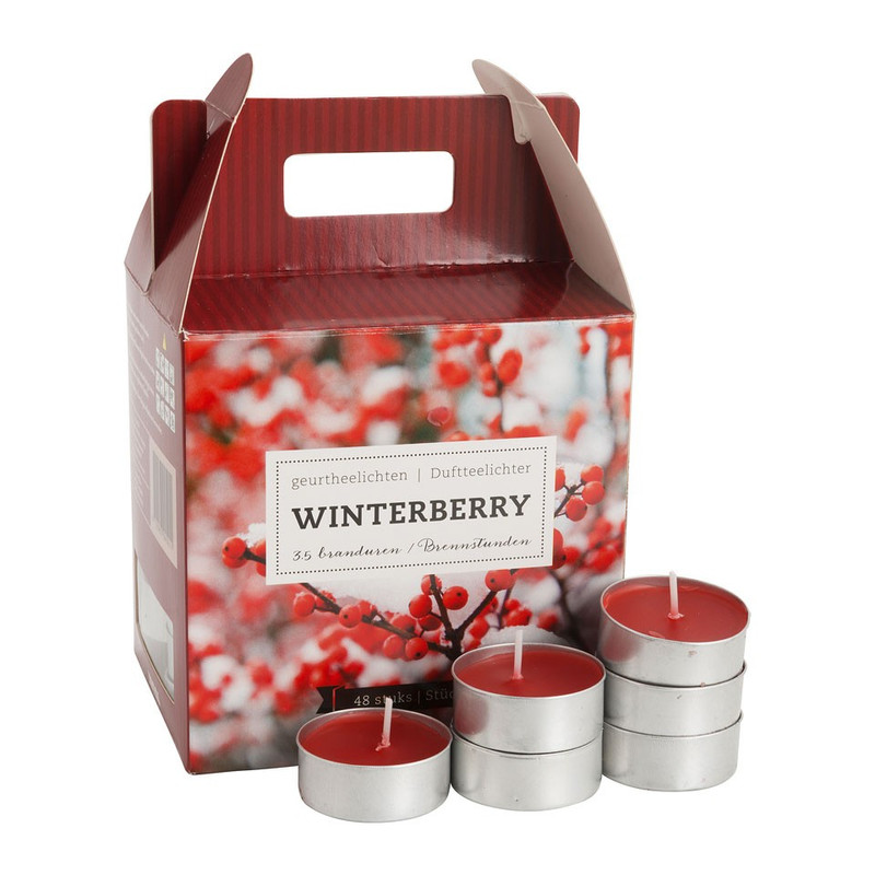 Breng nog meer sfeer in huis met deze fijne warme geur van de geurtheelichten winterberry. Door de zachte warme geur van bessen en het gezellige kaarslicht kom je helemaal tot rust als je ’s avonds op de bank zit. De geur is ook heerlijk tijdens een lekker ontspannend bad of met een romantische avond. Met 48 stuks theelichten met een brandtijd van 3,5 uur kan je extra lang genieten.