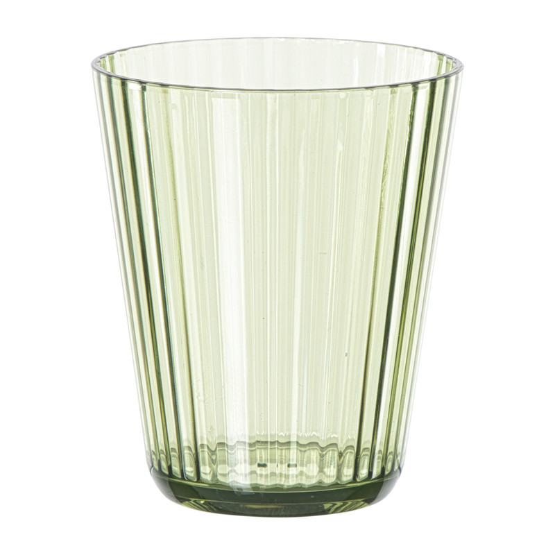 Tijd om jouw tafeldekking een frisse twist te geven met dit stijlvolle groene glas met streepreliëf. De verticale lijnen zorgen voor een elegante uitstraling, terwijl de groene kleur nét dat beetje speelsheid toevoegt. Perfect voor water, frisdrank of je favoriete homemade mocktail. Door het stevige PS-materiaal ligt ‘ie ook nog eens lekker in de hand.
