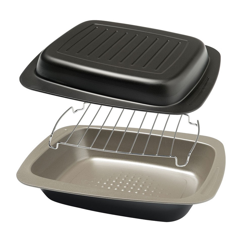 Deze 3-delige set van Guardini is perfect voor braden, bakken en grillen. De set bevat 1 non-stick bakplaat, 1 stalen grill, 1 non-stick braadpan. De 2 non-stick makmatrijzen zijn getest voor gebruik in de oven tot een maximum temperatuur van 230 graden. Ze staan bekend om hun uitzonderlijke prestaties.