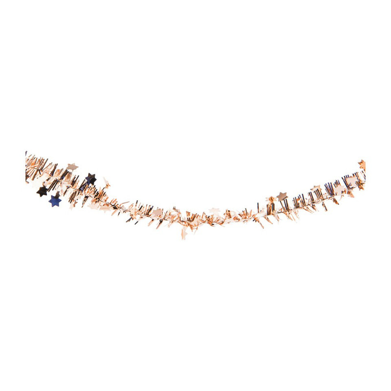 Kleed jouw huis feestelijk aan tijdens de feestdagen met deze champagnekleurige guirlande met sterren. De guirlande is super feestelijk om bijvoorbeeld in je boom te hangen. Je kunt de guirlande, dankzij het ijzerdraad dat erin verwerkt is, neerleggen op je eigen manier. De guirlande is 500 cm lang en gemaakt van kunststof.