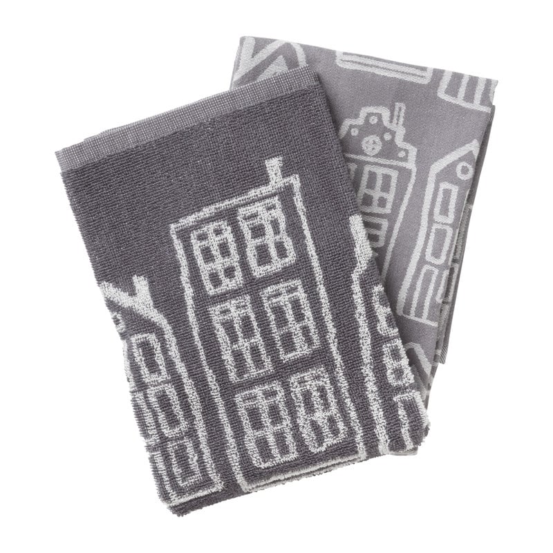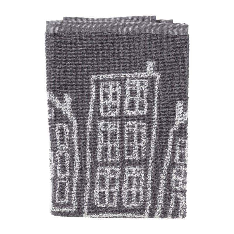 Handdoek antraciet huisjes - antraciet/wit - 50x50 cm
