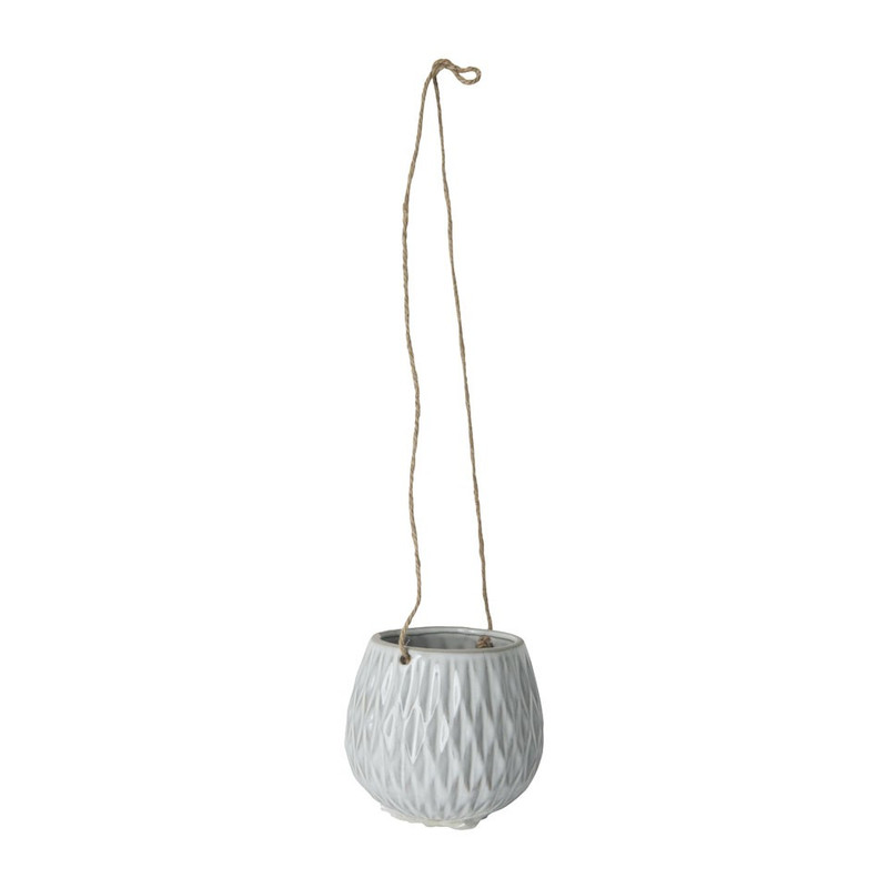 Super leuke hangende keramieke pot, voor als je iets anders wilt dan een standaard plantenpot. Deze hangende pot is een echte eyecatcher in je huis. Hang het aan een haakje in het plafond met een mooie plant er in. In de woonkamer, onder de overkapping of op het balkon, je kan alle kanten op met deze eyecatcher. De pot is gemaakt van keramiek en heeft een strak reliëf. De tinten wit, grijs en bruin zijn terug te zien in de keramieke pot en hij is 9x11 cm.