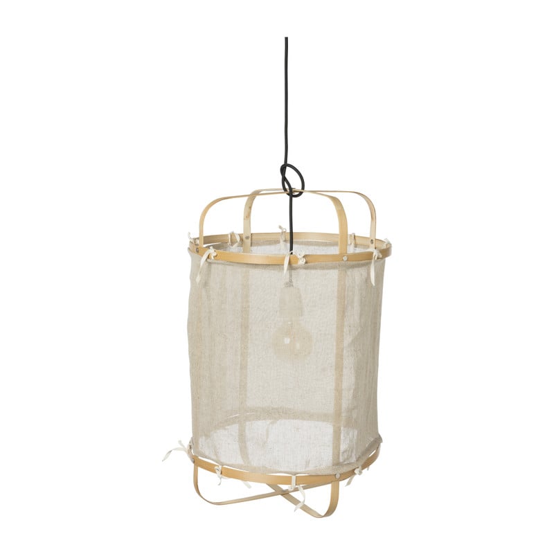 Op zoek naar een grote natuurlijke hanglamp? Ga voor dit exemplaar gemaakt van een katoen doek en een bamboe frame. Het design is subtiel maar het lichteffect is verrassend groots. Verkrijgbaar in de kleuren beige en creme.