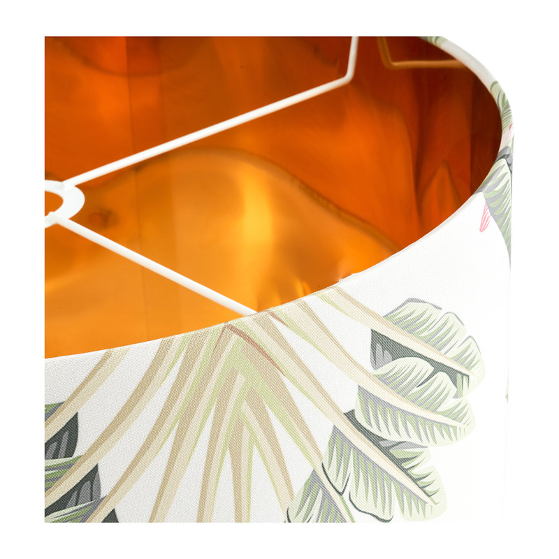 Waan je in tropische sferen met deze grote hanglamp. Mooi voor boven de eettafel! De lampenkap heeft een diameter van 45 cm en de hoogte is 28 cm. Er zit geen snoer en fitting bij inbegrepen.