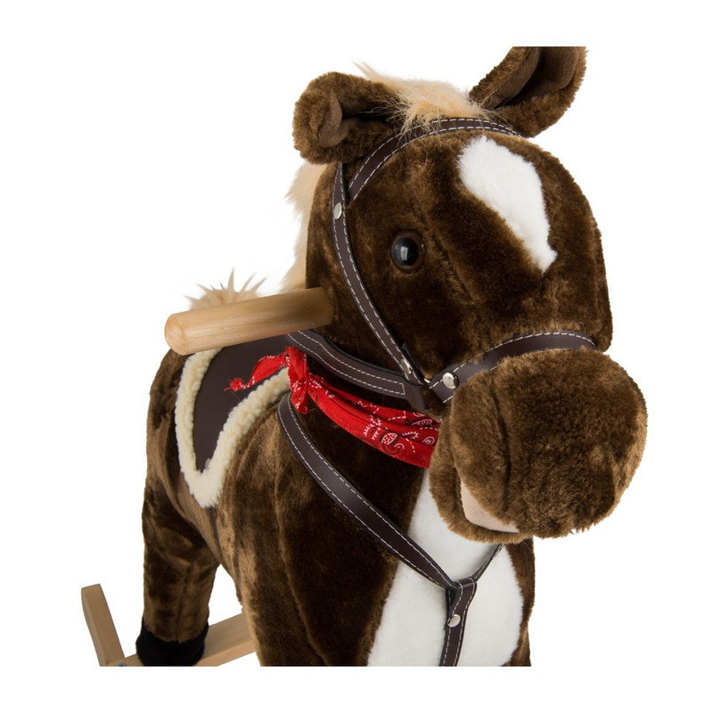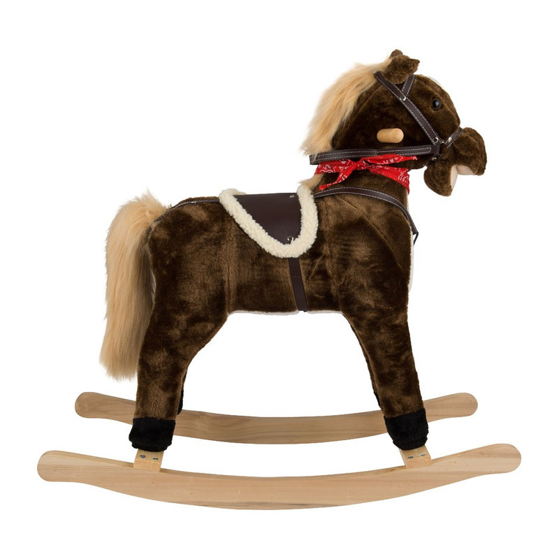 Dit fantastische hobbelpaard zorgt voor veel blije gezichtjes! Het hobbelpaard is een leuk cadeauidee voor een kinderverjaardag of als kraamcadeau. Er bestaan hobbelpaarden in verschillende uitvoeringen, maar een paard is toch het meest ultieme dier om op te hobbelen. Het paard is bruin van kleur, een rood boerensjaaltje om zijn nek en heeft een 'zadel' waar een kind op kan zitten. Aan de houten stokjes kunnen ze zich goed vasthouden en de voetjes kunnen op de onderste rand worden geplaatst. Het houten onderstel is 72 cm lang, de totale hoogte is 70 cm en heeft een breedte van 28 cm. Bekijk ook ons andere model!
