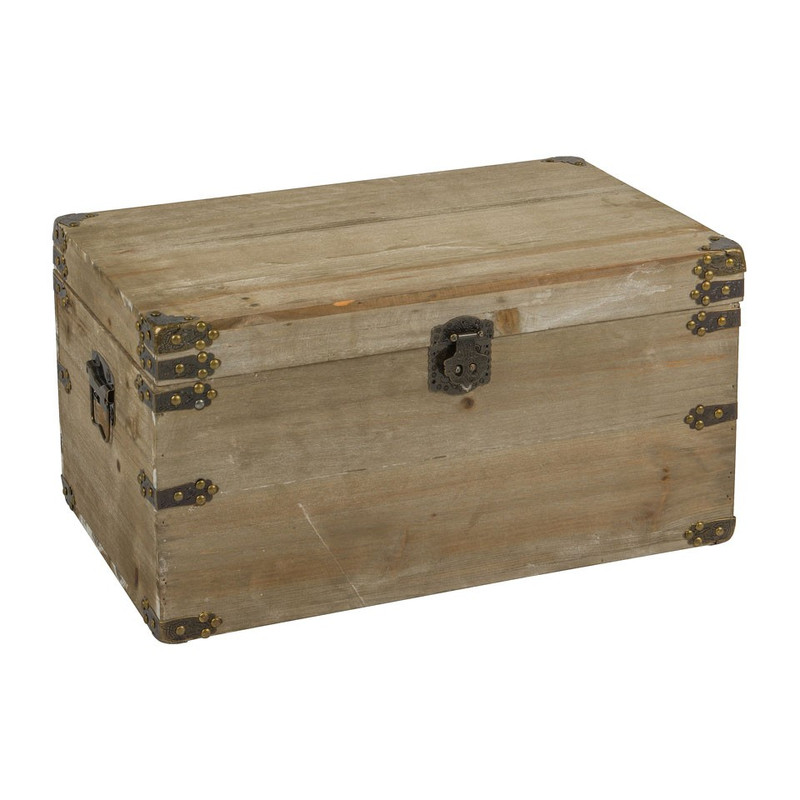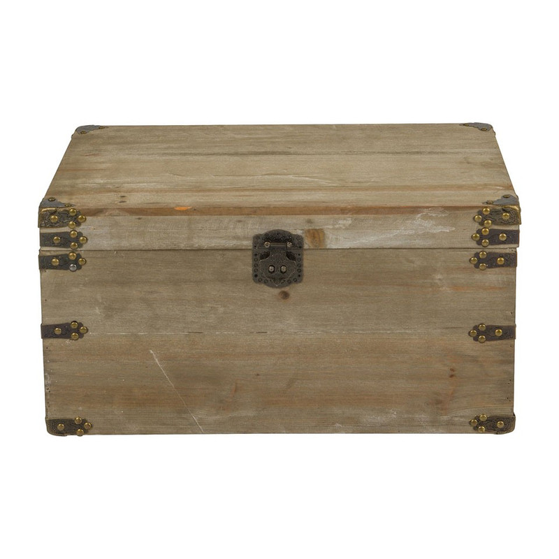 Decoratieve en praktische kist om spullen op een stijlvolle manier op te bergen. Aan de zijkanten zijn twee metalen handvaten gemonteerd, waarmee de kist gemakkelijk opgetild kan worden. Handig als je hem eens wilt verplaatsen bijvoorbeeld. De sluiting op de kist en het overige beslag zijn van dezelfde kleur metaal gemaakt als de handgrepen.