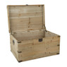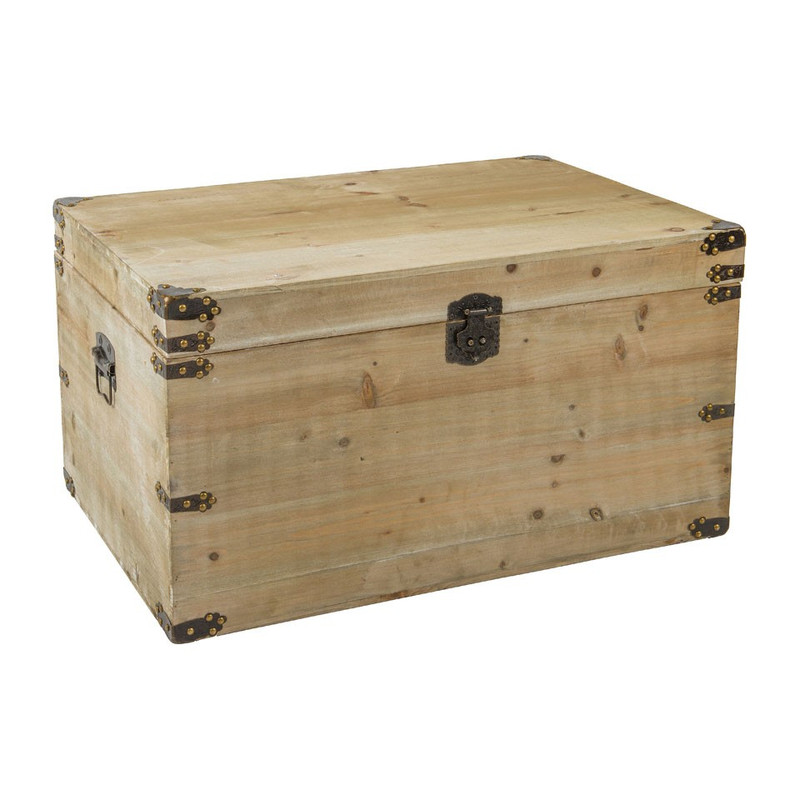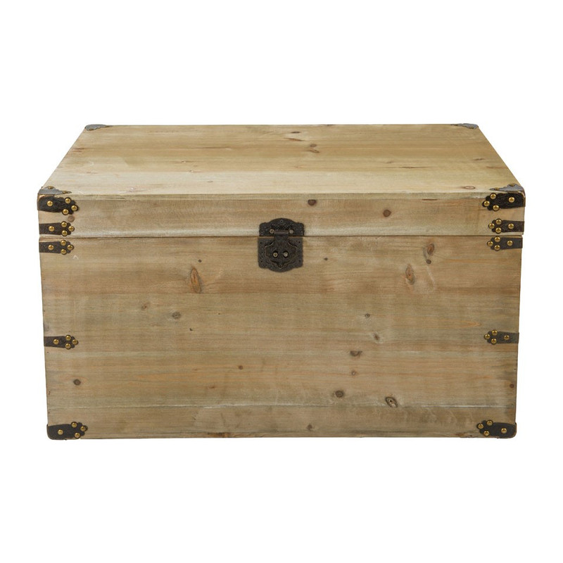 In deze grote kist met beslag kun je eenvoudig een heleboel spullen opbergen. Gebruik hem bijvoorbeeld als dekenkist in de slaapkamer, in de warme zomermaanden kun je er de dikke winterdeken in bewaren of juist warme plaids in stoppen.