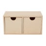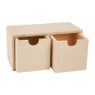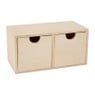 Dit houten ladekastje is perfect om te versieren met verf, glitters, kraaltjes, papier, vilt, textiel of washi tape bijvoorbeeld. Het doosje heeft twee lades. De afmeting van het doosje is: 9x18x9 cm.