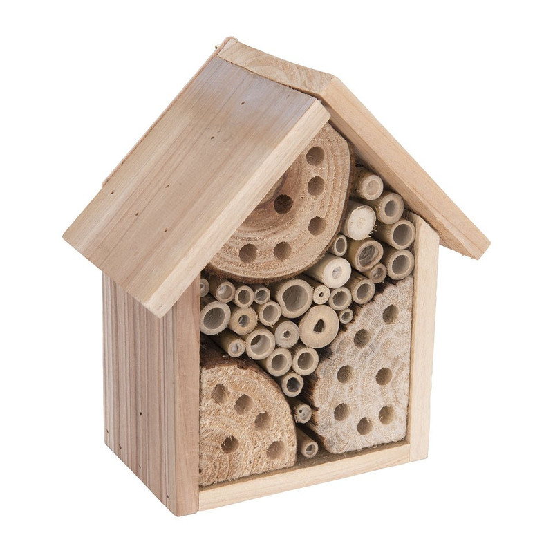 Het insectenverblijf is slim gemaakt van diverse houtsoorten, zodat er verschillende soorten insecten op af zullen komen. Het insectenhuisje is 17 cm breed, 10.5 cm diep en 19 cm hoog.