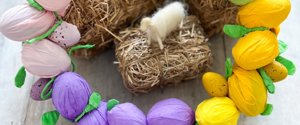 Decoreer je huis met zelfgemaakte paasdecoratie zoals een vrolijke paaskrans van crêpepapier. Deze simpele krans met paaseieren heb je in een handomdraai in elkaar geknutseld. Een leuke knutselactiviteit voor jong en oud!