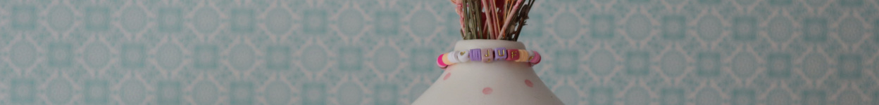 Benodigdheden: vaasje met kusje | bosje gekleurde (droog)bloemen | kralenset om armbanden te maken