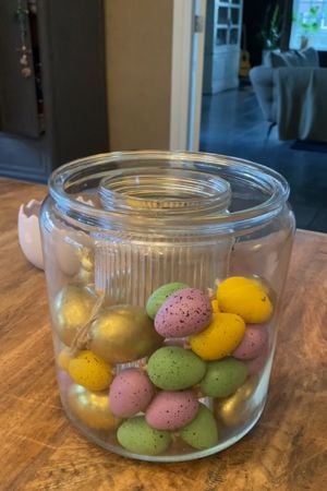 Vul deze ruimte met decoratieve eieren of andere leuke paasaccessoires die je hebt.