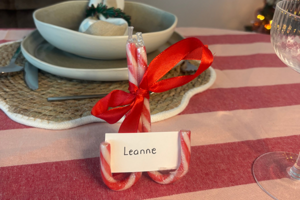 Maak jouw kersttafel dit jaar extra feestelijk met een zelfgemaakte naamkaarthouder van candy canes! Deze vrolijke kaarthouders zijn niet alleen leuk om te maken, maar zorgen ook voor een speelse en persoonlijke touch aan je tafeldekking. Perfect voor tijdens het kerstdiner of een gezellige brunch.
