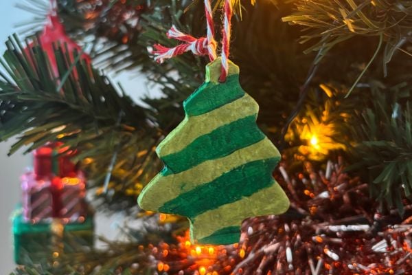 Geen klei in huis? Dan is zoutdeeg een geweldig alternatief. Je maakt het met ingrediënten die je waarschijnlijk al in de kast hebt staan: 2 kopjes bloem, 1 kopje zout, 1 kopje water en 1 eetlepel zonnebloemolie. Kneed het tot een soepel deeg en rol het net als klei uit. Steek je favoriete kerstvormpjes uit en bak de hangers op 100 °C in de oven. Afhankelijk van de dikte zijn ze na 1 tot 3 uur hard. Daarna kun je ze beschilderen, vernissen en ophangen.