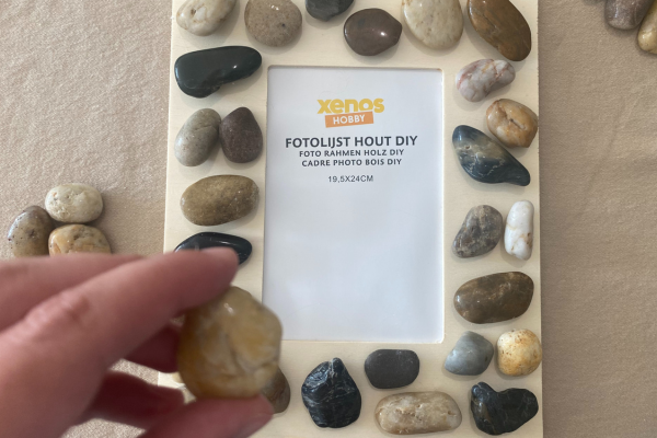 Leg de stenen neer op de rand van de fotolijst. Blijf net zo lang varieren totdat je tevreden bent met het eindresultaat.