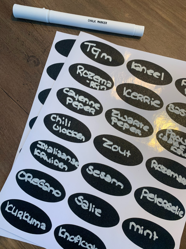 Met een labelprinter of labelmaker maak je eenvoudig zelf etiketten. Even typen en je label komt er aan de andere kant uit. Heb je een mooi handschrift? Schrijf dan de namen van de kruiden op mooie etiketten. Een andere leuke optie is om met een witte krijtstift op potjes te schrijven. Je hebt dan helemaal geen etiketten nodig!