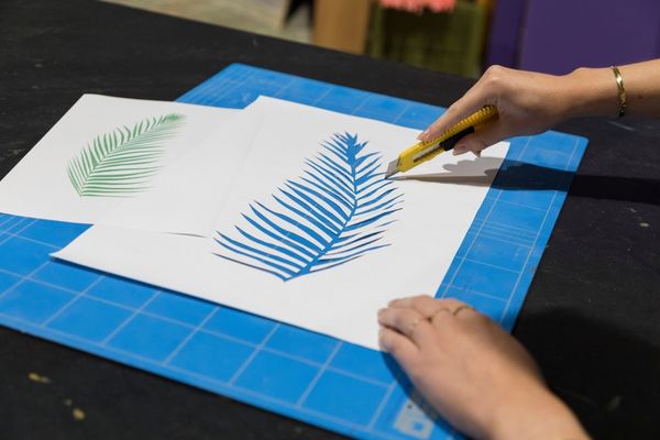 Stap 4. Print het sjabloon op A3 papier uit. Pak de snijmat, het stanleymesje en het sjabloon erbij. Het is tijd om het sjabloon uit te snijden. Snij alleen de gekleurde stukken uit.