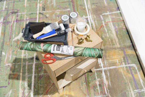 Een nachtkastje om van te dromen. Je maakt het eenvoudig met een likje verf, behang en meubelknopjes.