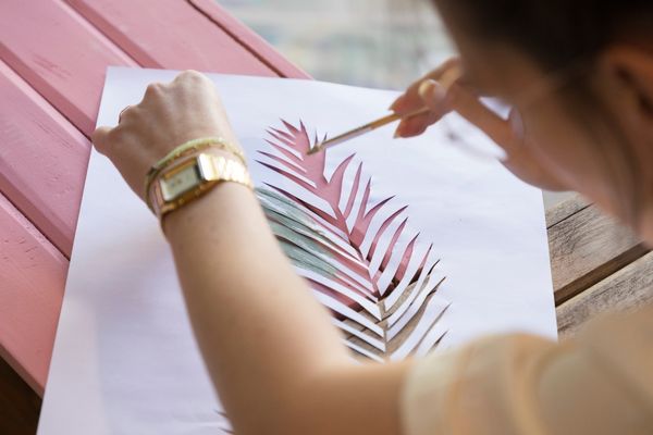 Stap 5. Heb je het sjabloon uitgesneden? Zet de kratjes in de gewenste positie en pak je een nieuwe kleur meubelverf. Mix en match jouw favoriete kleur en ga voor kleurencombinatie die helemaal binnen jouw interieur past. Leg het sjabloon op de gewenste plek van het kratje, doe de verf in het verfbakje, pak een dun kwastje / penseel en kleur het sjabloon in.
