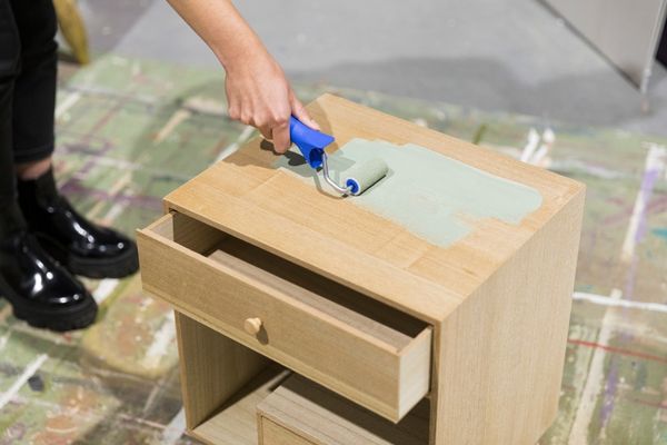 Stap 2. Pak jouw favoriete kleur meubelverf en schilder het kastje. Neem voor de volledigheid ook de binnenkanten mee. Laat het nachtkastje goed drogen.